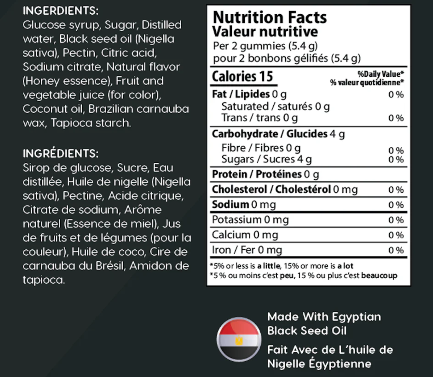 Properly Dosed: Each gummy delivers 500mg of Egyptian black seed oil standardized to 4% thymoquinone, significantly higher than the 0.2%–1.5% found in most commercial products.