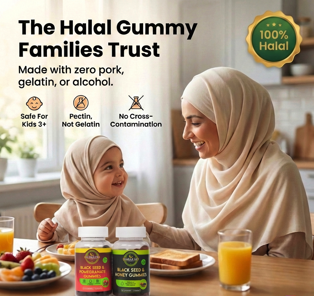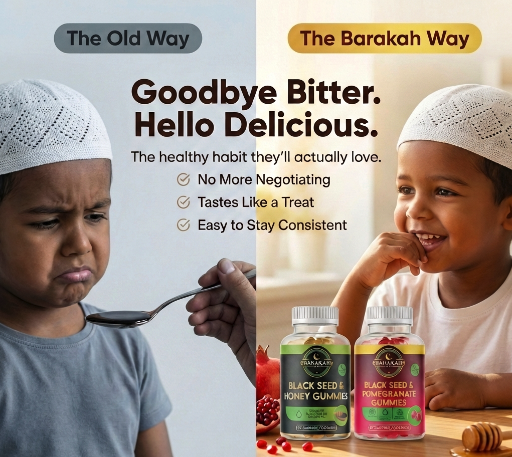 Sunnah-Backed: Barakah gummies are rooted in the prophetic tradition of black seed — "the cure to every disease except death" — and made effortless for modern daily life.